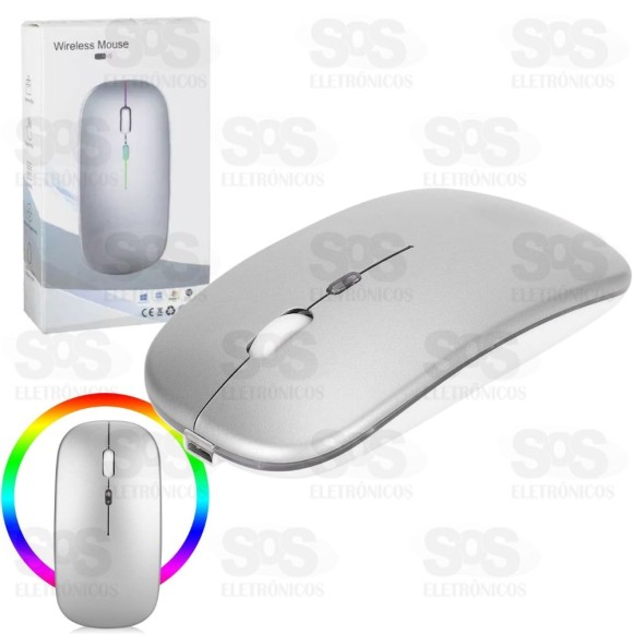Mouse Sem Fio Recarregável Bluetooth Pode ser usado via bluetooth ou com a antena sem fio. Com rastreamento óptico de alta precisão. Design moderno ultrafino, com luzes de LED RGB. Bateria recarregável via cabo tipo-c. 3 modos de dpi: 800/1200/1600 Frequência de 2,4GHz. Conta com 3 botões + rolagem Alcance de até 10 metros. Suporte para Windows 98/2000/NT/ME/2003/XP/7/8/10 Tamanho: 11 x 5,5 cm Cores variadas: Preto, Prata, Azul, Amarelo, Cinza, Rosa, Verde e Roxo