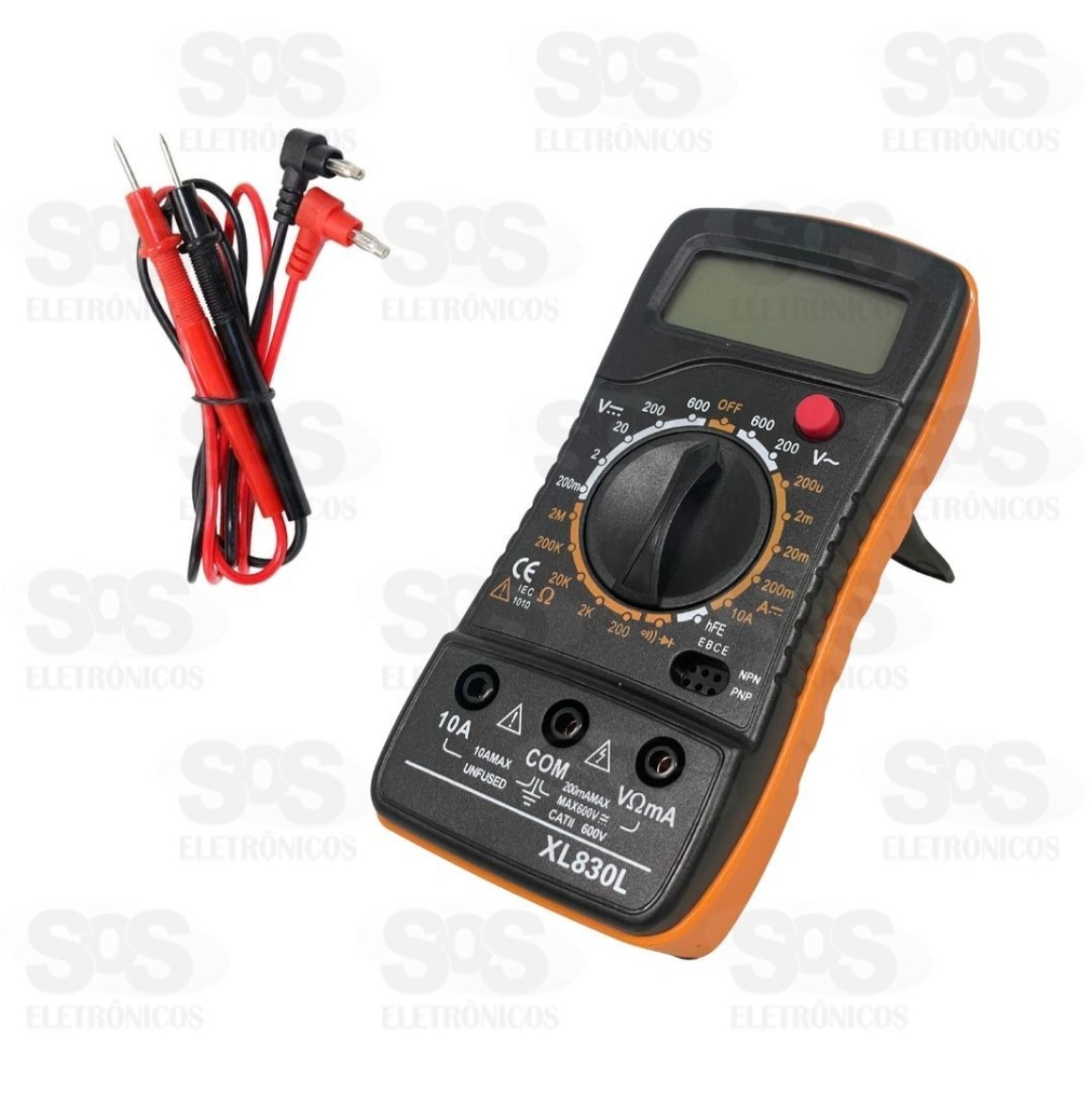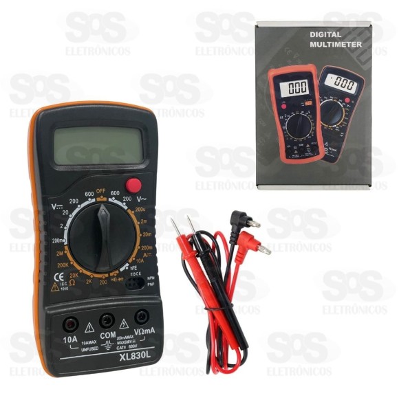 Ele mede a tensão contínua, tensão alternada, corrente contínua, teste de diodos, teste de transistores e resistência.