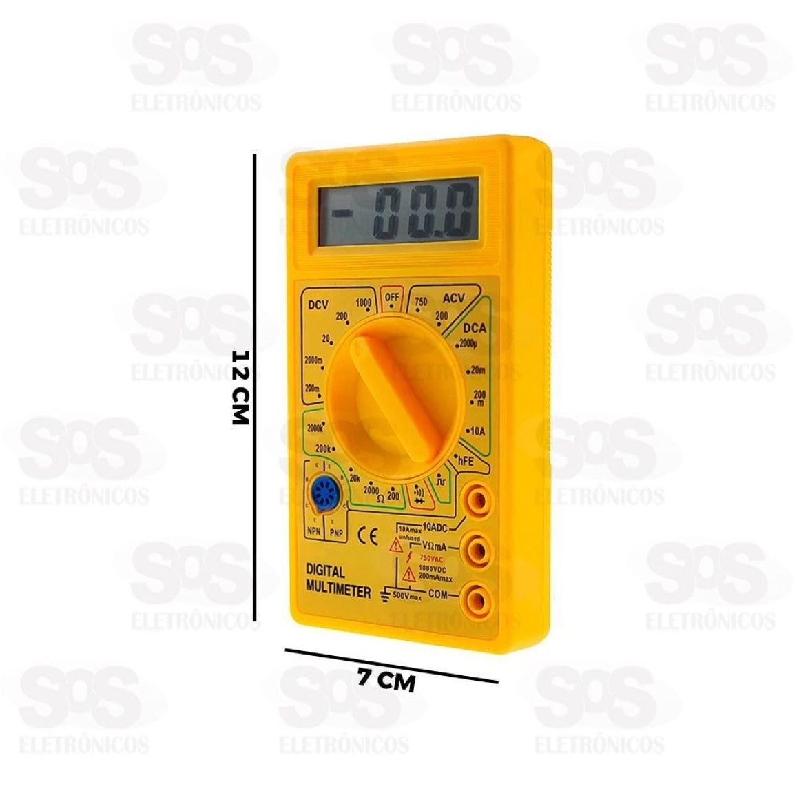 - Multímetro com visor em cristal líquido (LCD), 0,5” de altura e 3 1/2 dígitos.