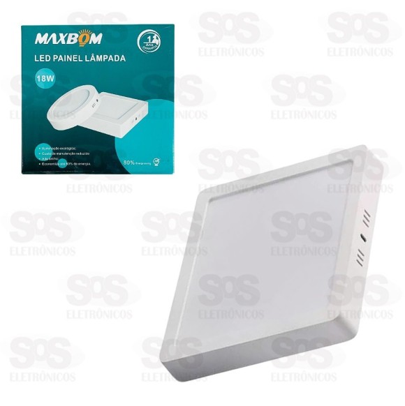 Painel Quadrado Sobrepor LED Branco Quente 18W 3200K Maxbom
