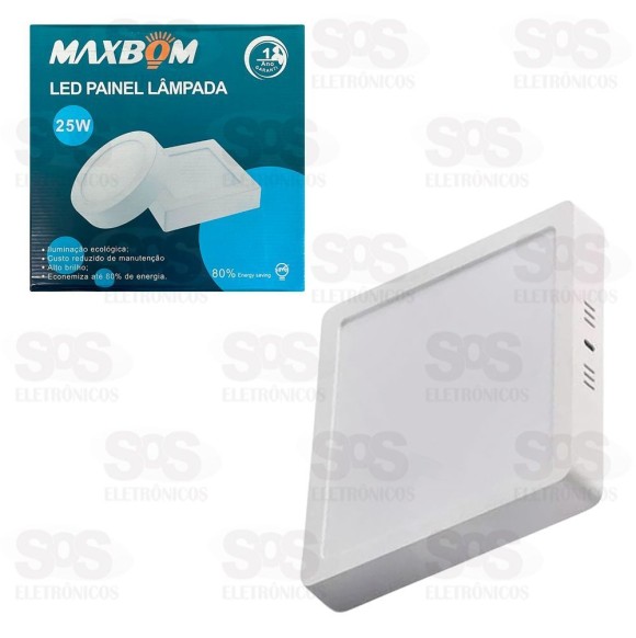 Painel Quadrado Sobrepor LED Branco Quente 25W 3200K Maxbom