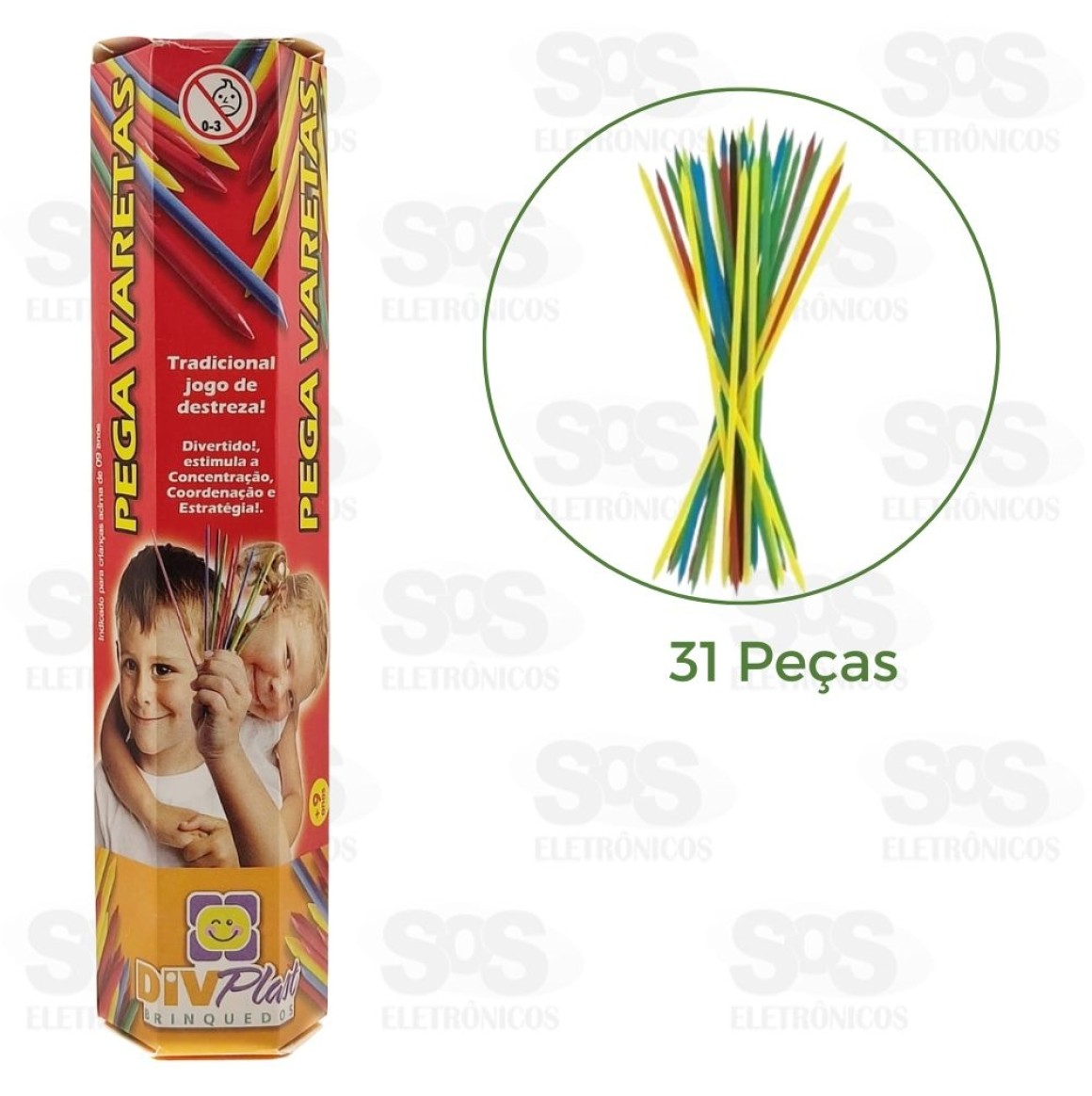 Descrição: O tradicional e emocionante Jogo de Pega Varetas!! Segure-as verticalmente e solte sobre a mesa para dar inicio ao jogo.