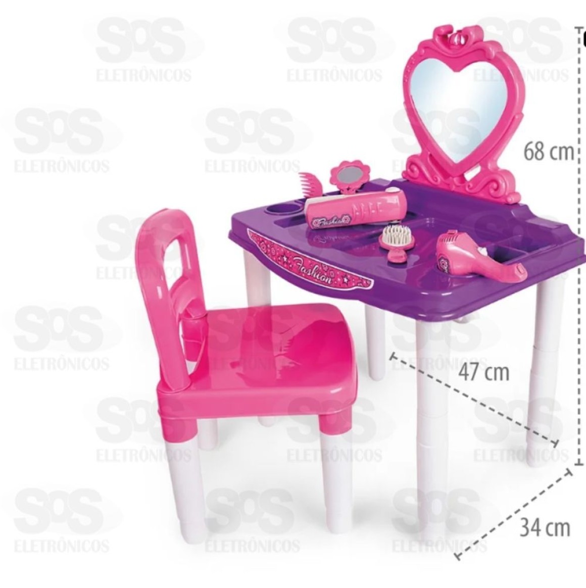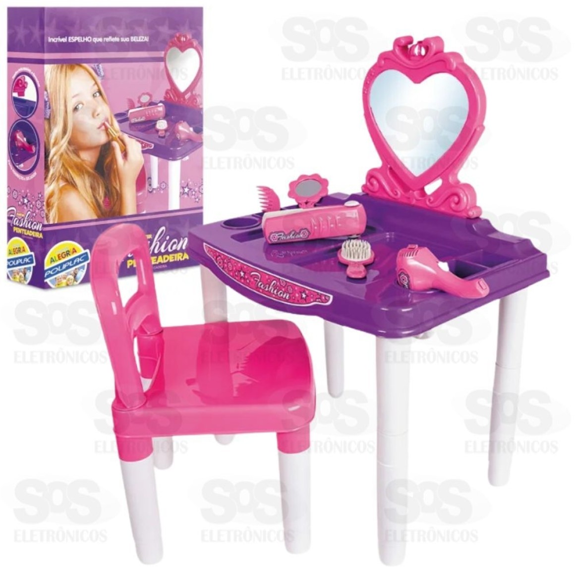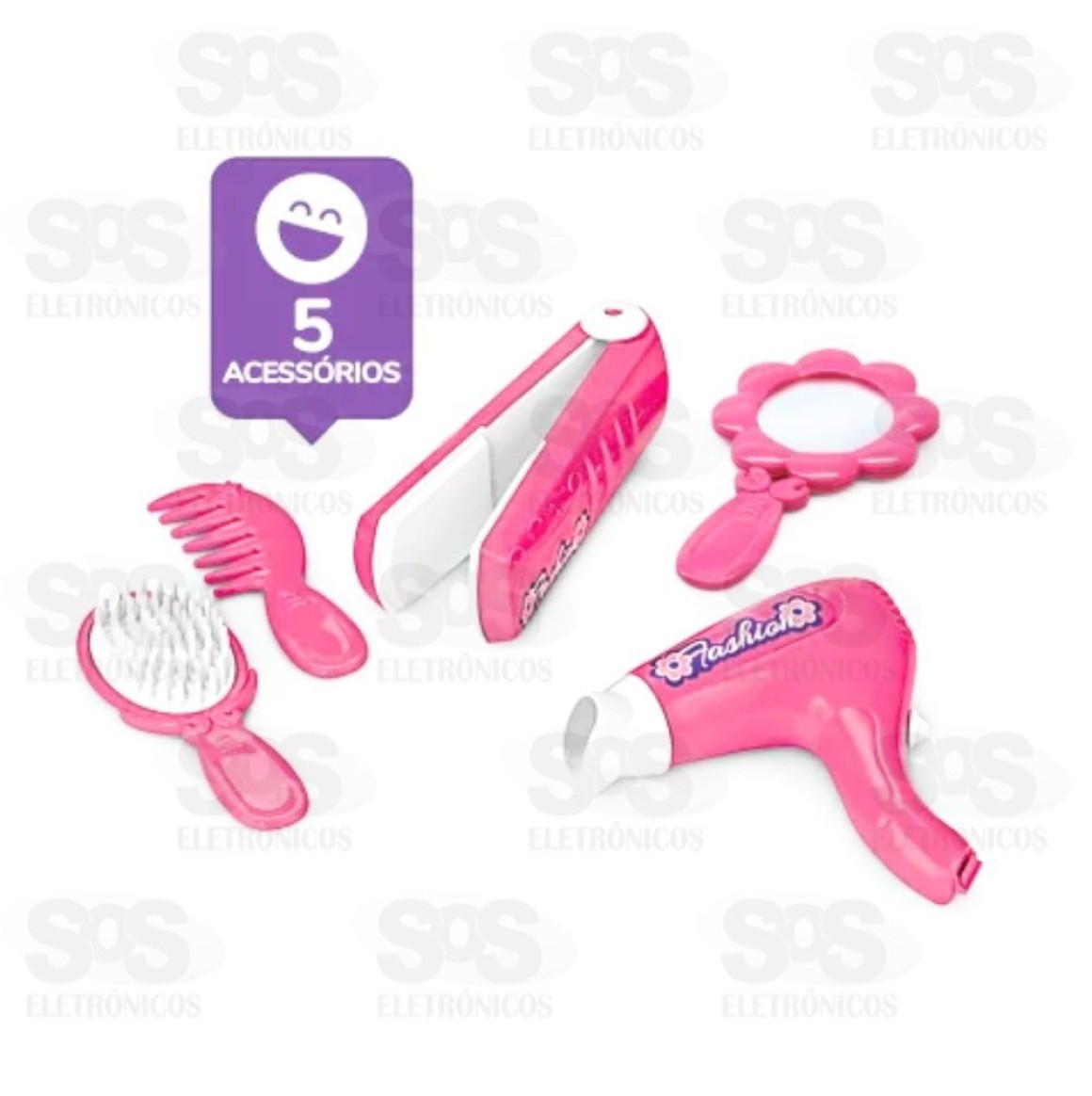 se olhar no espelho e utilizar o kit de pentes e escova para deixar os seus cabelos arrumados e não poderia faltar um secadorzinho e a mini-chapinha para fazer igual gente grande.