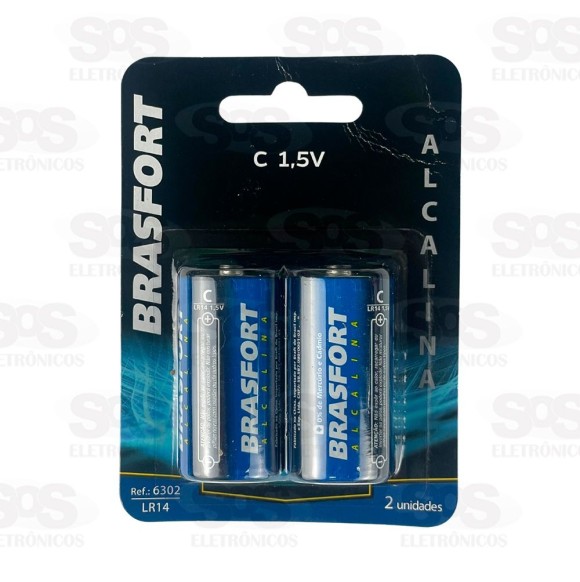 Pilha Alcalina C LR14 1,5V Cartela Com 2 Unidades Brasfort 6302 Alcalina LR14 e 1,5V Composição: Dióxido de manganês, hidróxido de potássio, grafite e zinco. Pilhas com 0% de mercúrio e cádmio.