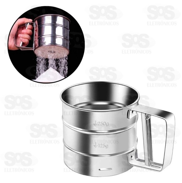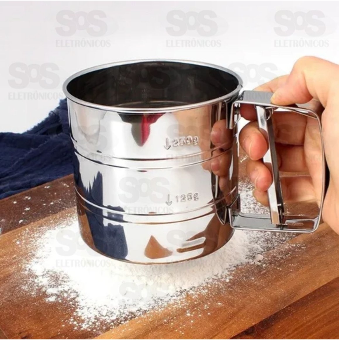 Fabricado em aço inoxidável durável e resistente à ferrugem, ele é perfeito para polvilhar farinha, açúcar, cacau, tapioca e outros ingredientes de confeitaria, proporcionando uma distribuição uniforme e delicada.