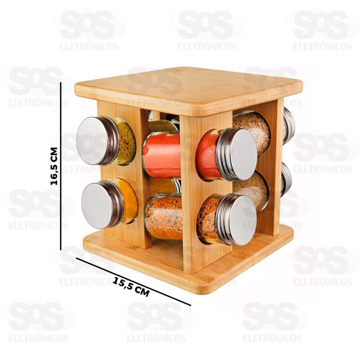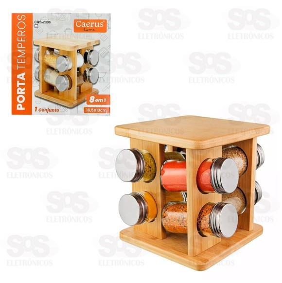 Porta Temperos Giratório 8 Frascos Bambu Caerus CRS-2308
