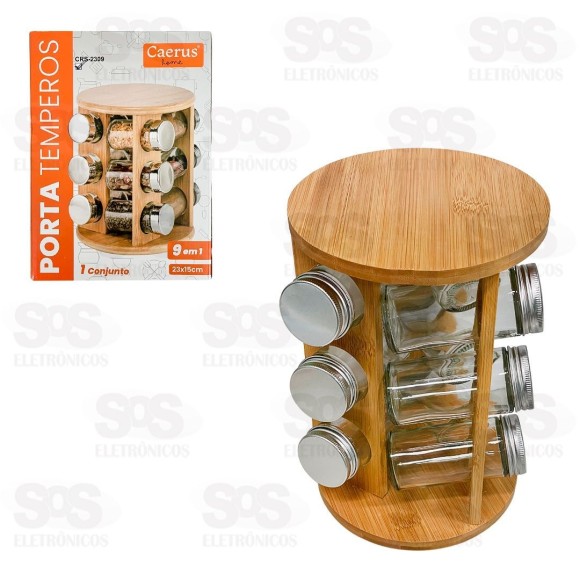 Porta Temperos Giratório 9 Frascos Bambu Caerus CRS-2309
