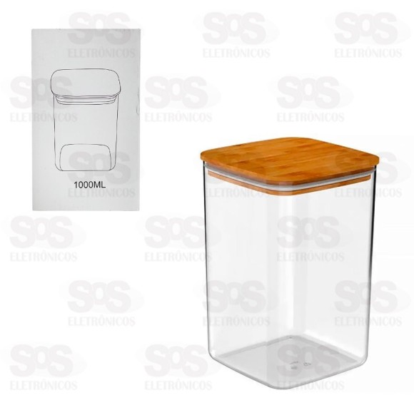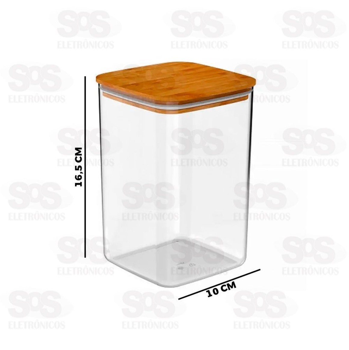 Pote Acrílico Quadrado Com Tampa De Bambu 1000ML TOP1056