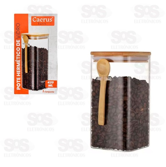 Pote De Vidro Com Tampa De Bambu e Colher 420ML CRS-2296