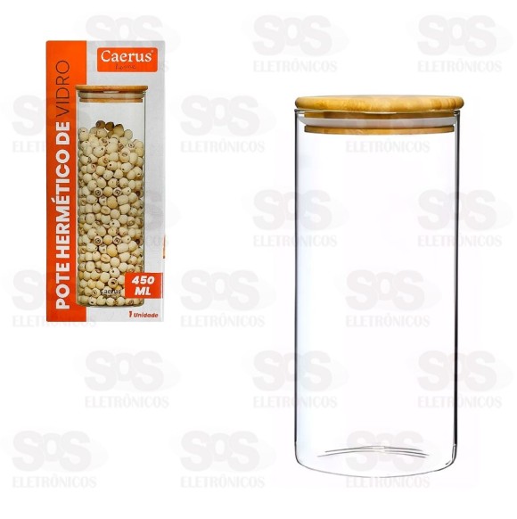 Pote De Vidro Redondo Com Tampa De Bambu 450ML CRS-2305