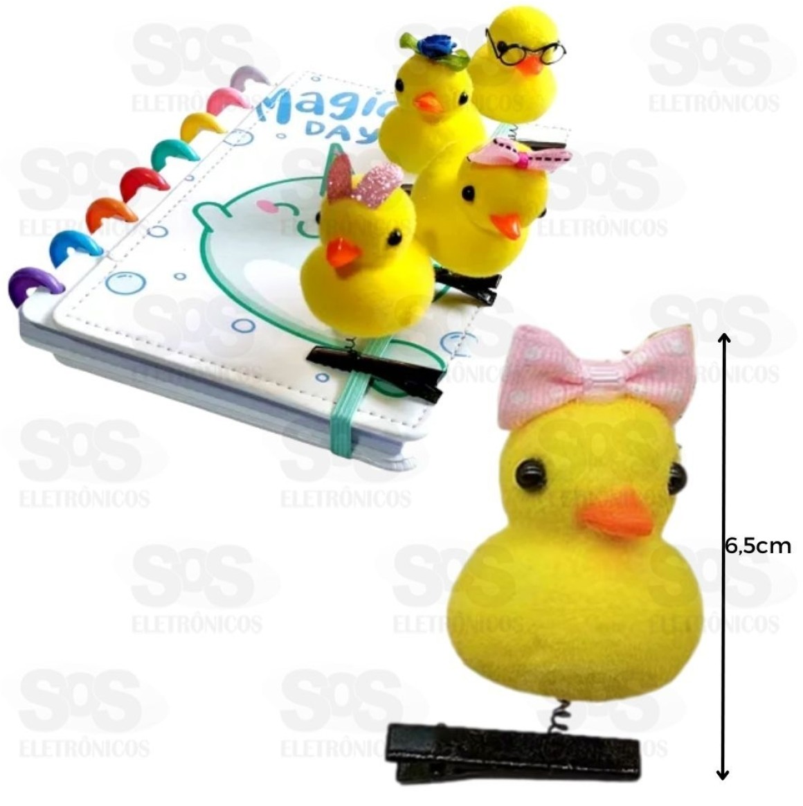 Cada patinho possui um enfeite colorido exclusivo, preso à presilha por uma mola que dá movimento ao patinho.