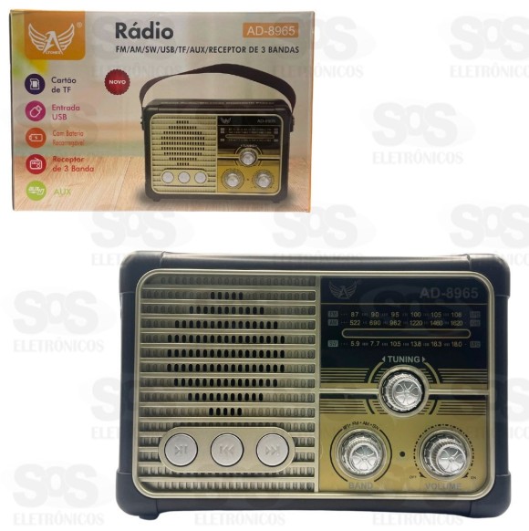 2. Rádio Retrô 3 Bandas Com Bluetooth Altomex AD-8965