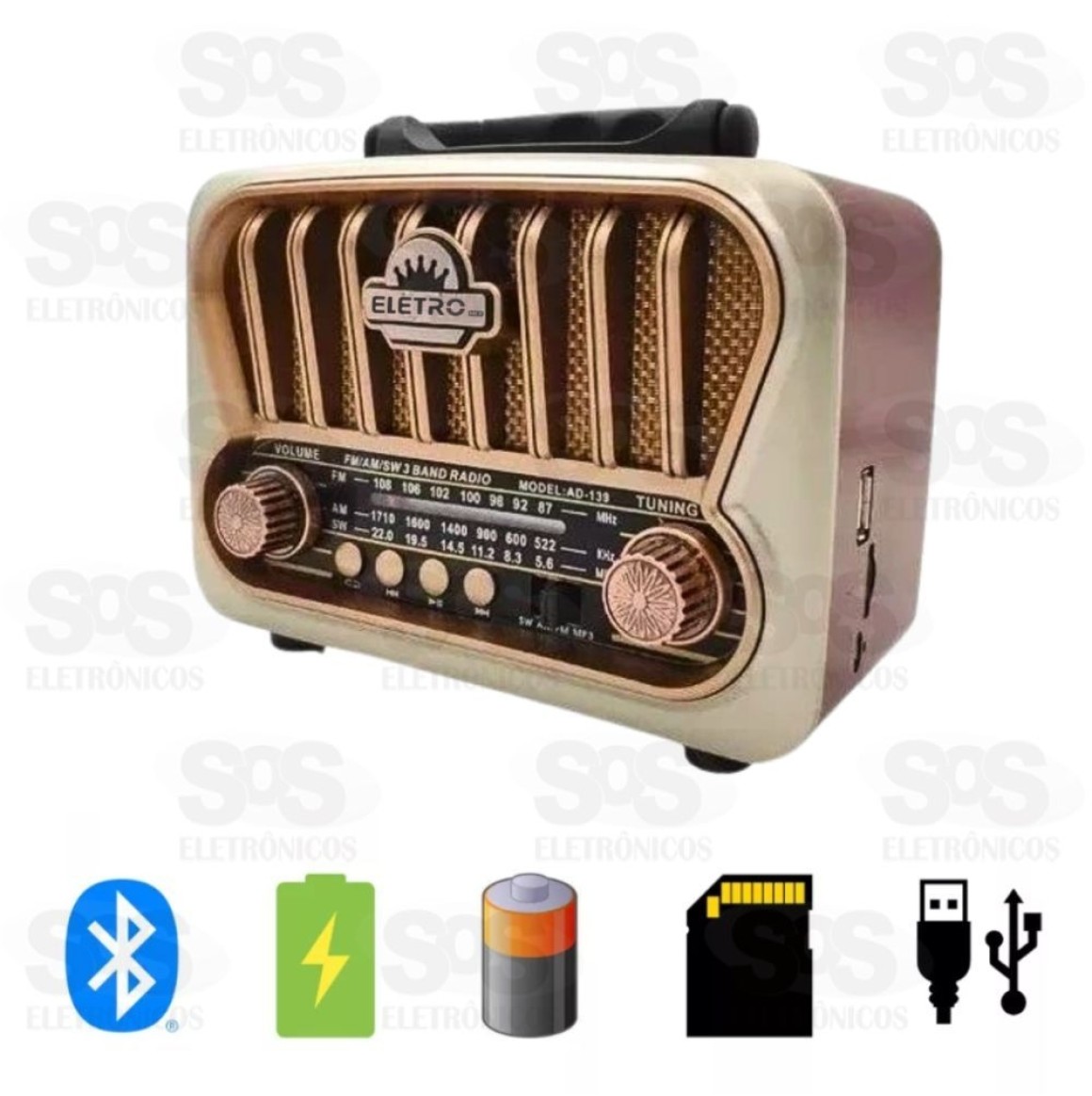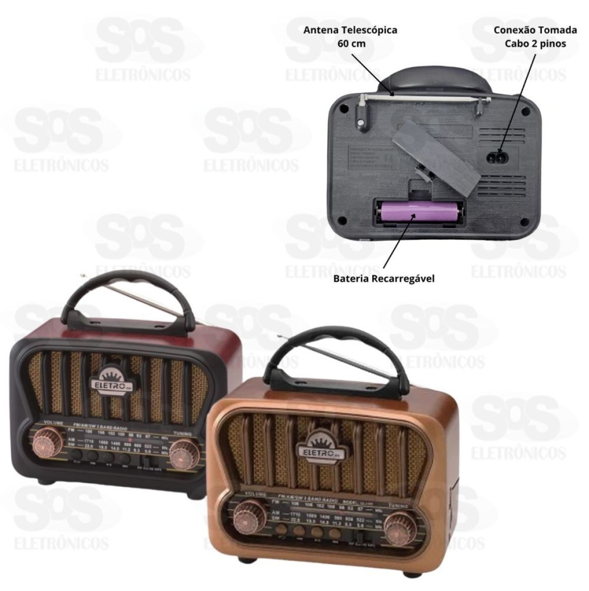 Rádio Retrô Com Lanterna 3 Bandas e Bluetooth Eletromex EL-1311
