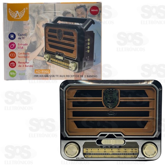 Rádio Retrô Receptor 3 Bandas Altomex AD-8960