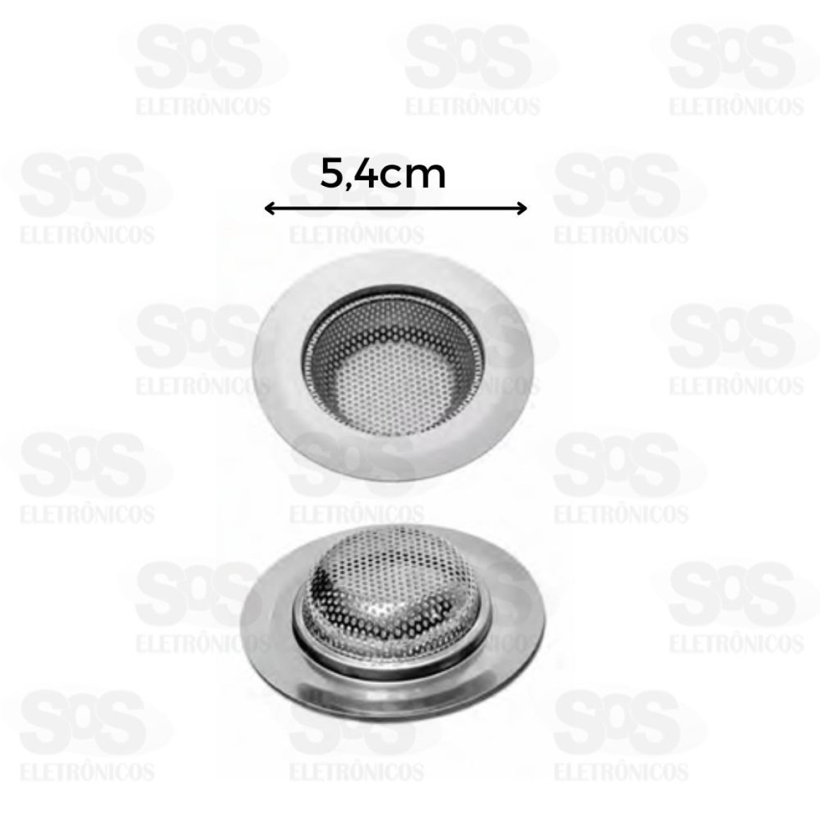 Ralo De Aço Para Pia 5,4 CM Ralo bem reforçado e com bordas largas. Tela perfurada em aço inox com orifícios de 2 mm Borda externa com 2 cm Profundidade de 2 cm