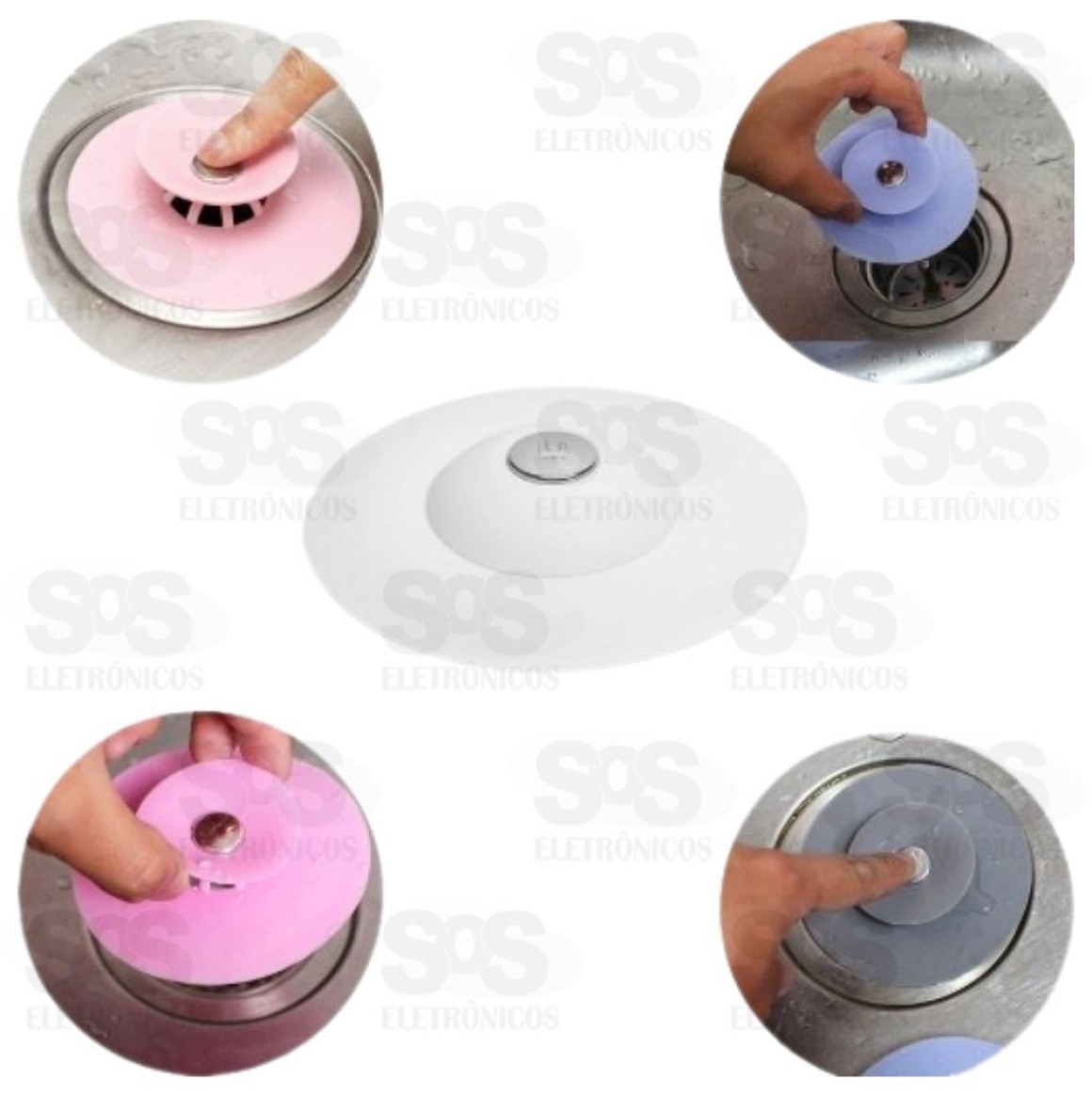 O ralo de silicone tem função dupla, é uma parada de drenagem e coletor de sujeiras. Pressione o botão central para permitir o fluxo de água e use como coletor de sujeiras.