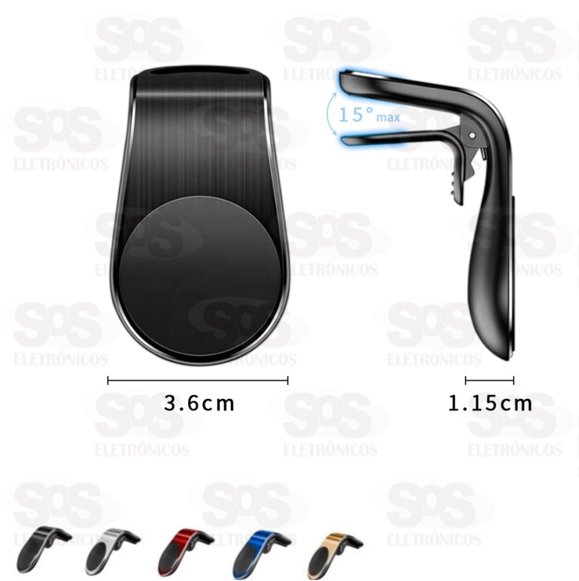Suporte para Celular Fixação pela grade de saída de ar condicionado com abertura de até 15 graus Imã super potente para apoio do celualr ] De facil instalação Giro de até 360 graus Nas cores preta , vermelha ,azul e dourada