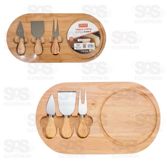 Tábua Para Queijo 4 Em 1 Caerus CRS-2832 Tábua para cortar e servir queijos. Acompanha faca, espátula e garfo. Feita em bambu resistente. Tamanho: 36 x 18 x 1,5 cm