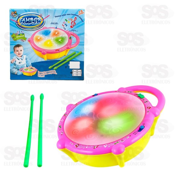 Tambor Divertido Luzes e Sons Toy King TK-1053 Aprendendo e crescendo de uma forma divertida. Estimula o desenvolvimento visual, auditivo, coordenação motora e habilidades sonoras. Com 5 cores de luz, 3 modos de jogos, 9 músicas doces e 9 sons de tambores. Acompanha 2 baquetas. Necessita de 3 pilhas AA (Não inclusas) Controle de volume. Tamanho: 24,5 cm Recomendado para crianças acima de 3 anos. Cores variadas