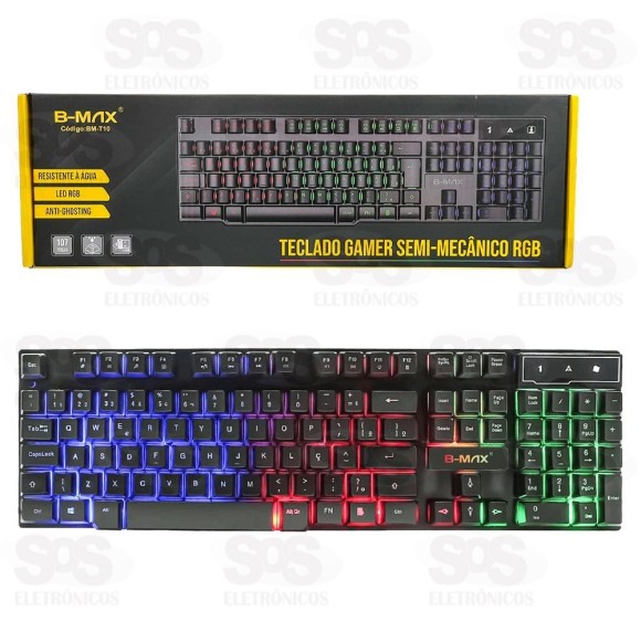 Teclado Gamer Semi Mecânico LED RGB B-Max BM-T10