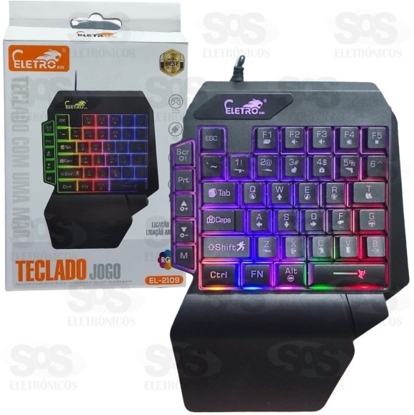 Teclado de uma mão ideal para jogos com apoio de pulso.