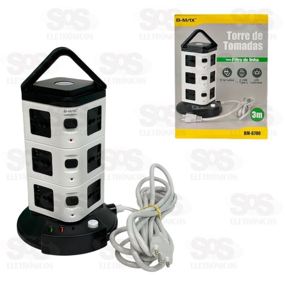 Torre Multiplug 12 Tomadas e USB B-Max BM-8700