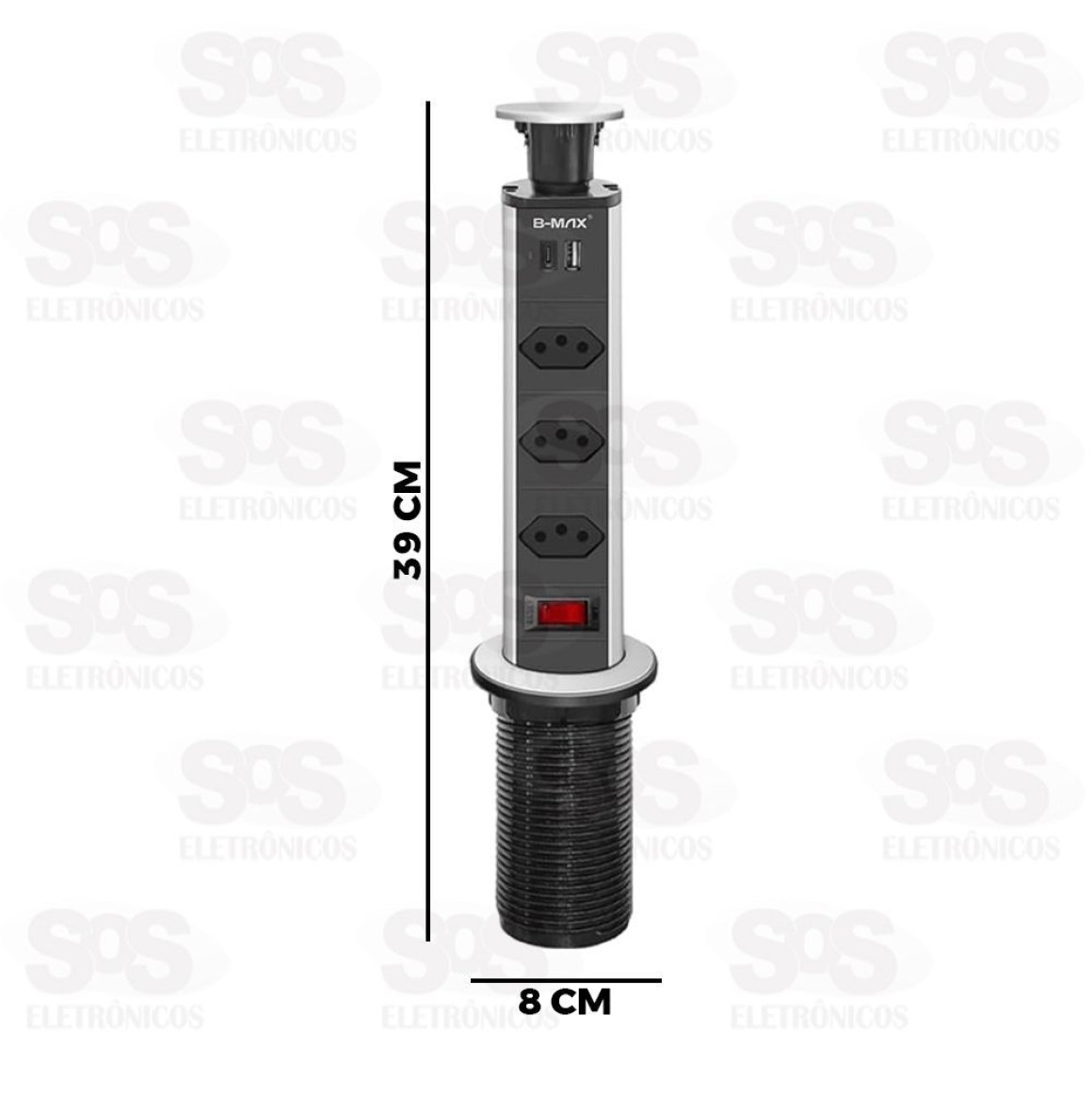 Torre Retrátil Multiplug 3 Tomadas e USB B-Max BM-8691