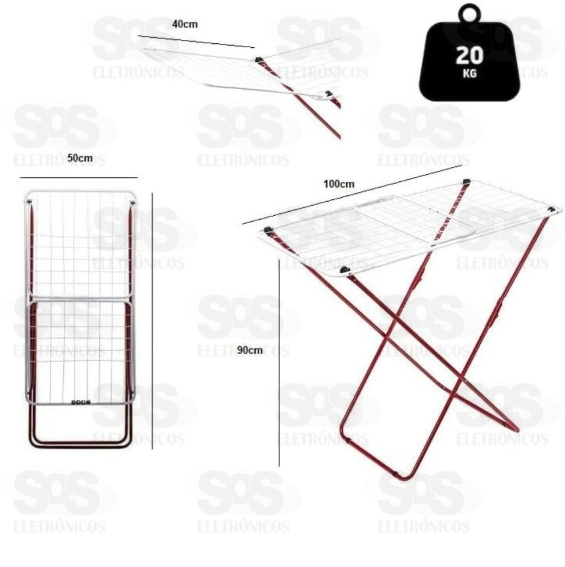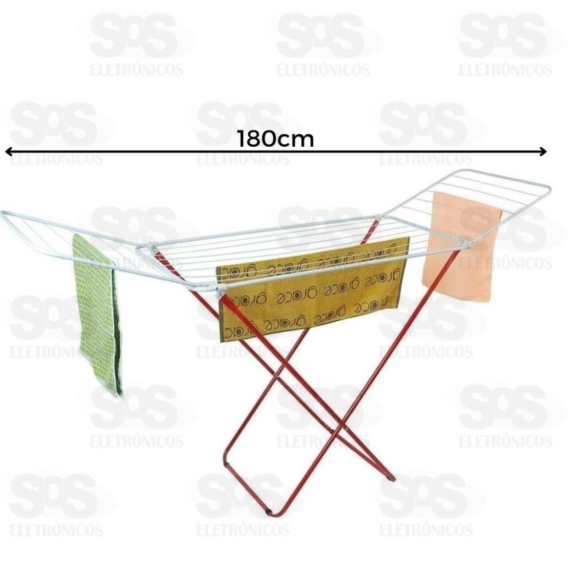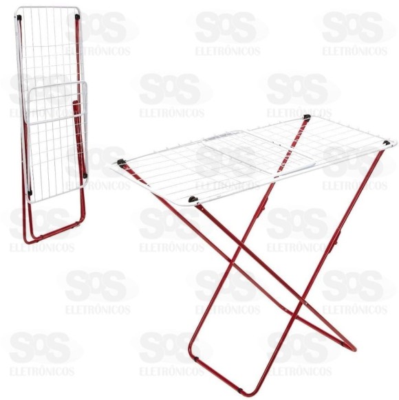 Com sua estrutura robusta e design moderno nas cores vermelho e branco, ele se destaca em qualquer ambiente. Fácil de montar e desmontar, este varal é ideal para uso interno e externo, proporcionando praticidade e conveniência.
