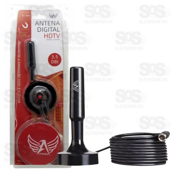 Antena Digital HDTV Base Com Imã 5 Metros Altomex AL-3003