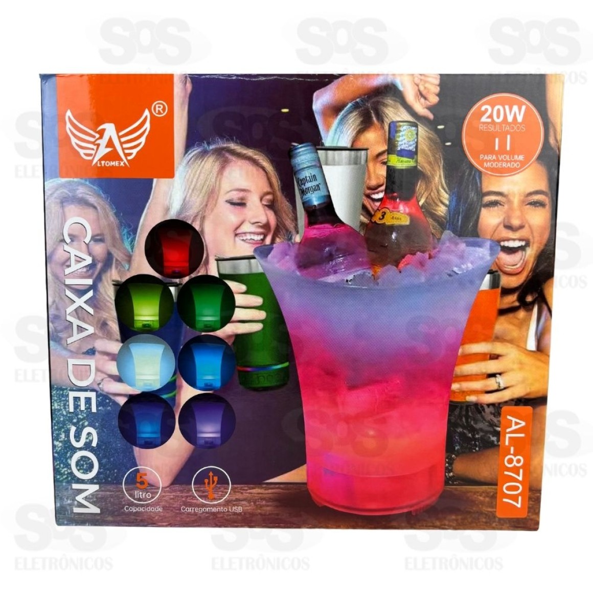 Balde De Gelo Com Caixa De Som Led Rgb Bluetooth Altomex AL-8707