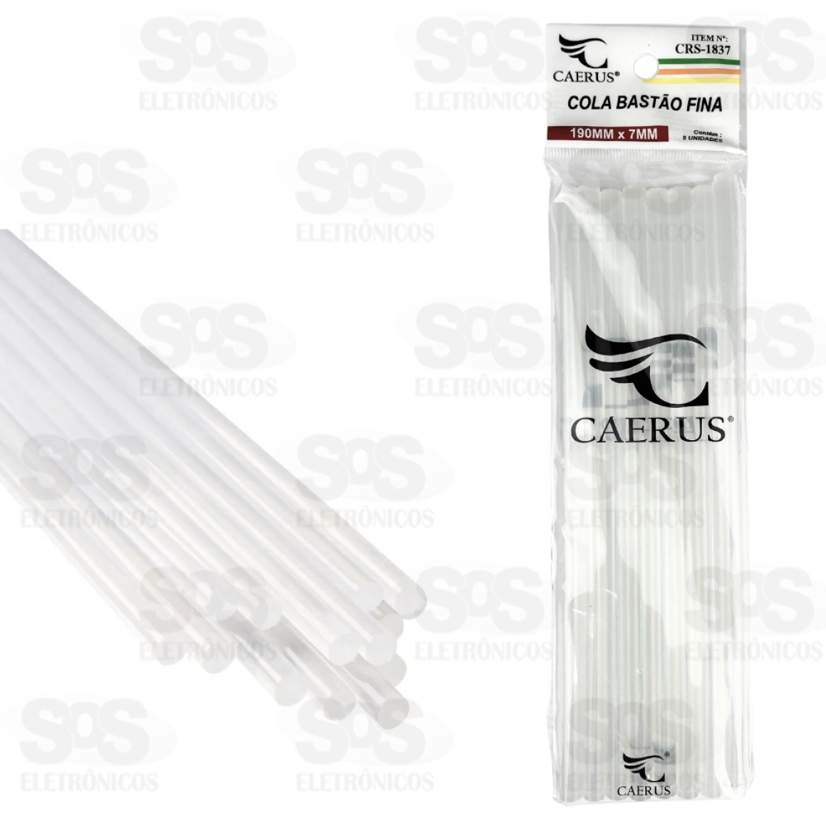 Bastão De Cola Quente Fino 8 Unidades 7 x 190 mm Caerus CRS-1837