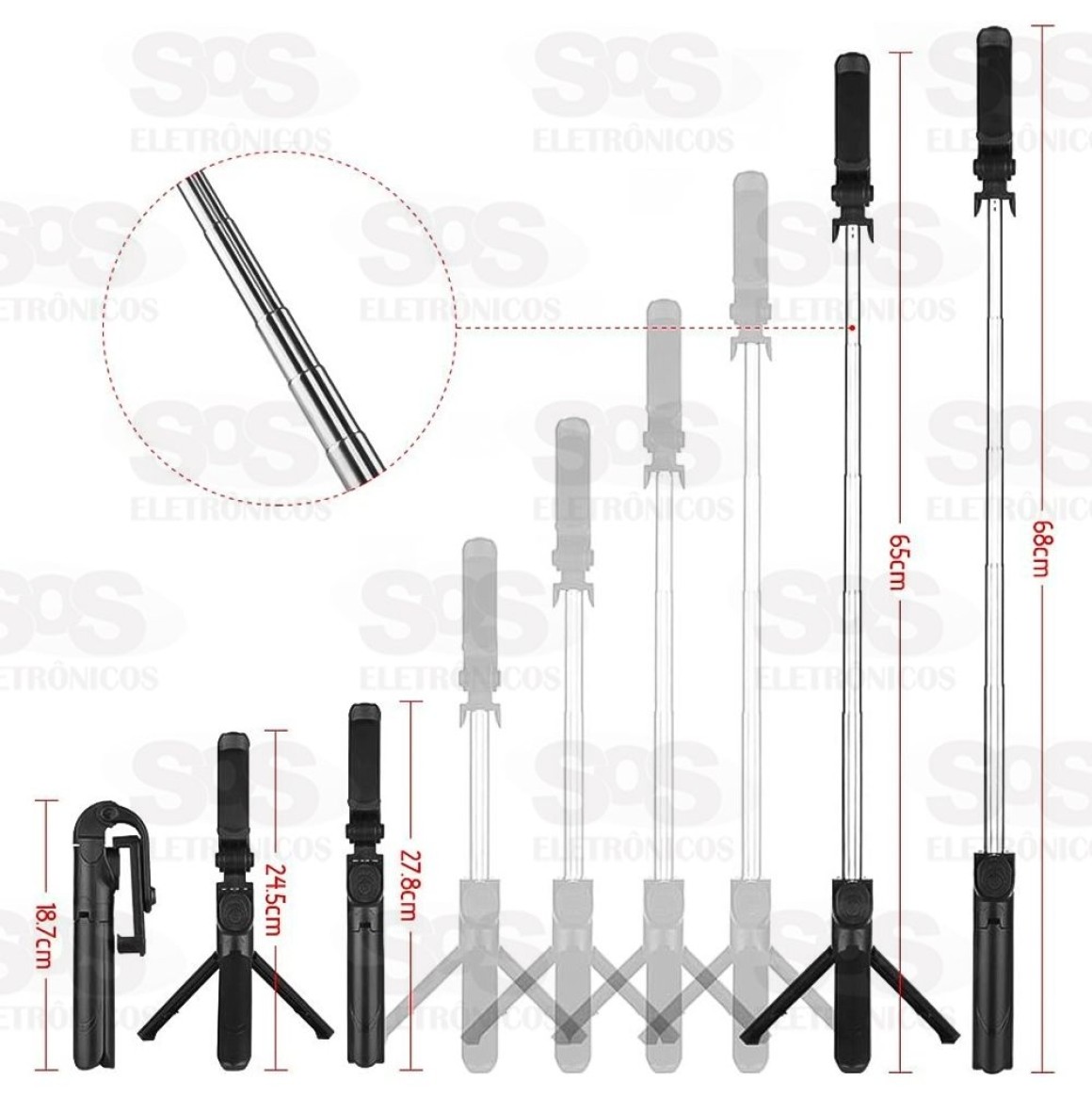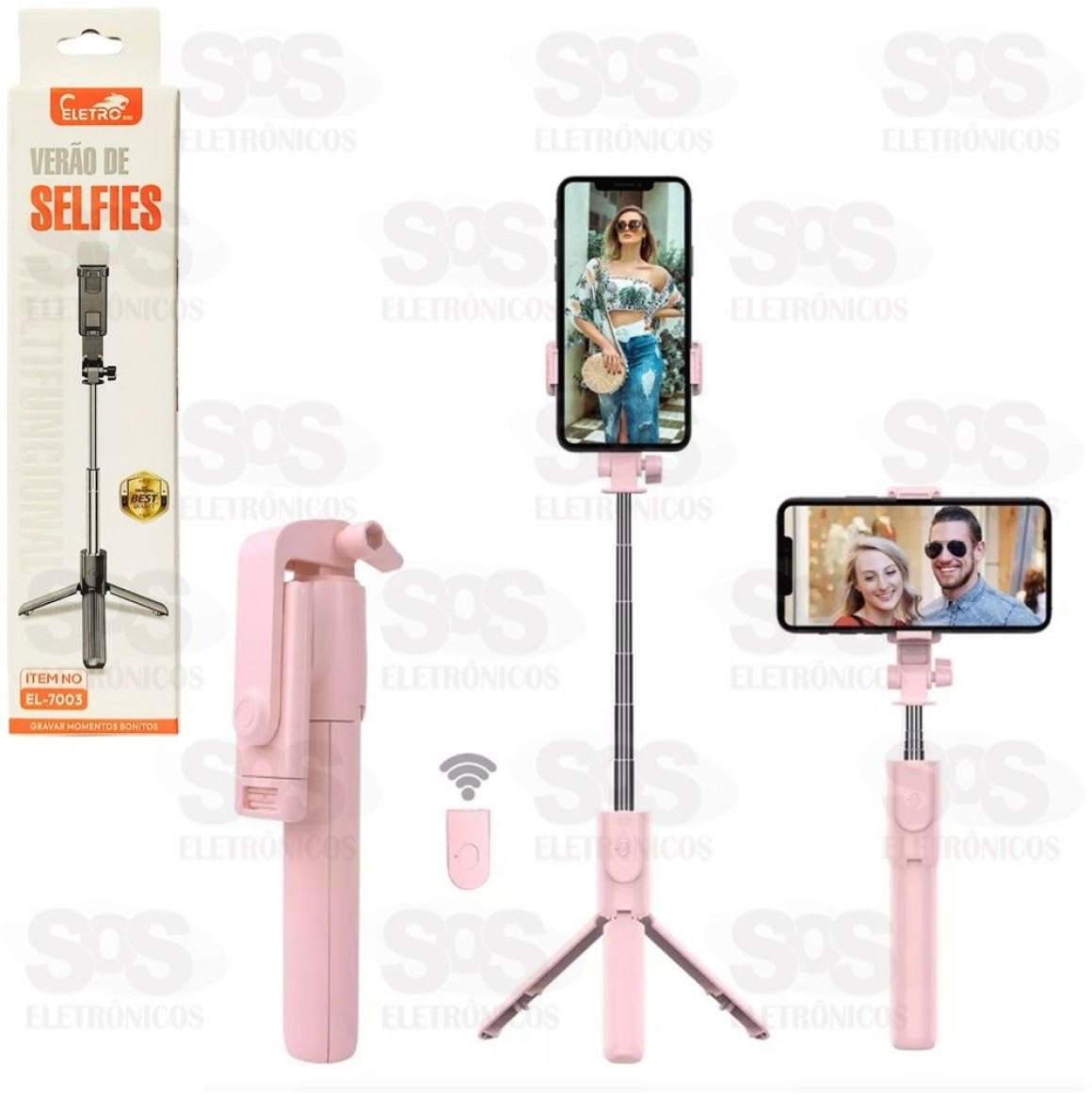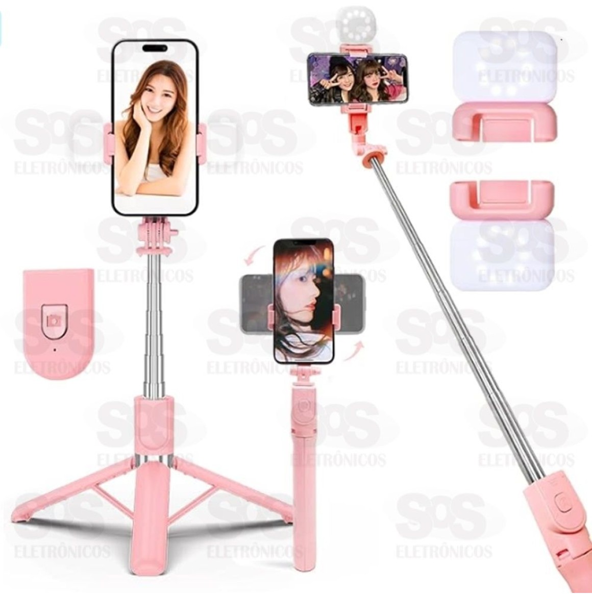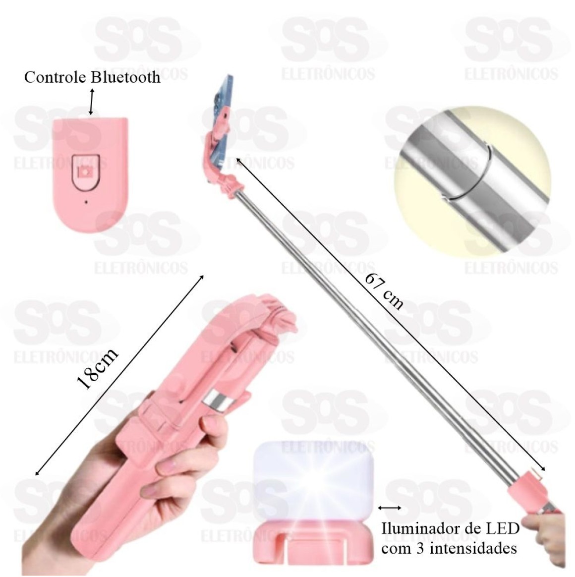 Bastão De Selfie Tripé Com Controle e Iluminador Eletromex EL-7003