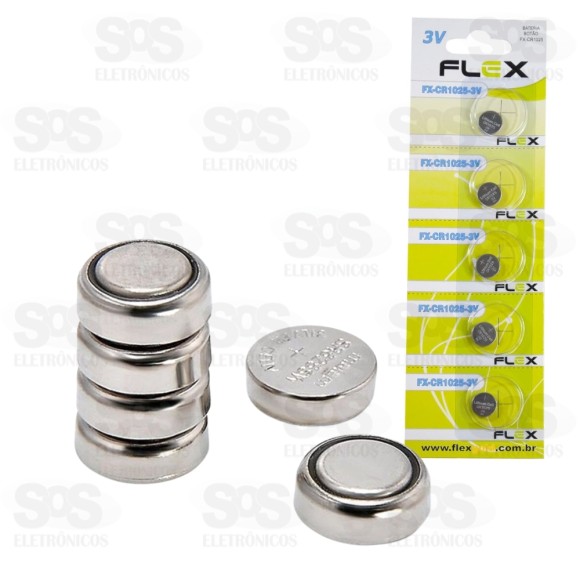 Bateria Botão 3V CR1025 Com 5 Unidades Flex