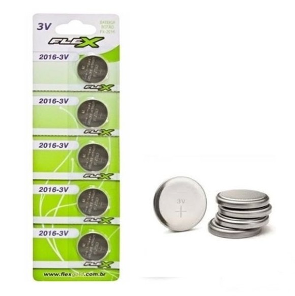 Bateria Moeda 2016 3V Flex Cartela Com 5 Unidades