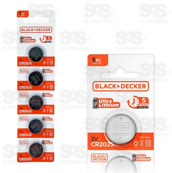 Bateria Moeda Ultra Lithium CR2025 3V 5 Unidades Black Decker