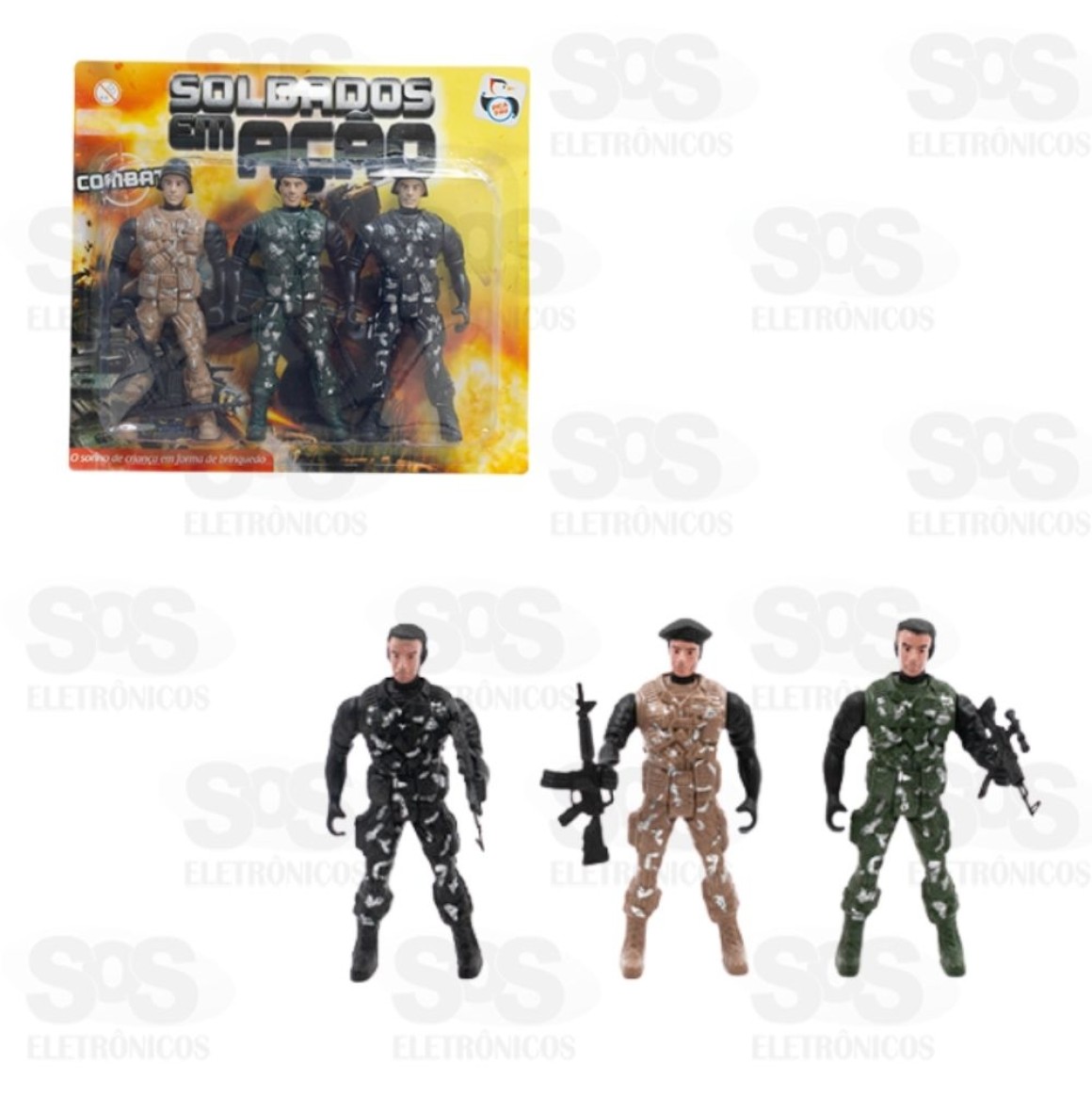 Kit 3 Boneco Combate Soldados Em Ação Pica Pau PI3558