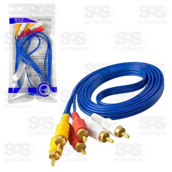 Cabo 3RCA + 3RCA Ponta Dourada 1,5 Metros Azul MexCabo 3RCA+3RCA 1 Linha1,5 metros de comprimentoCabo da cor azul