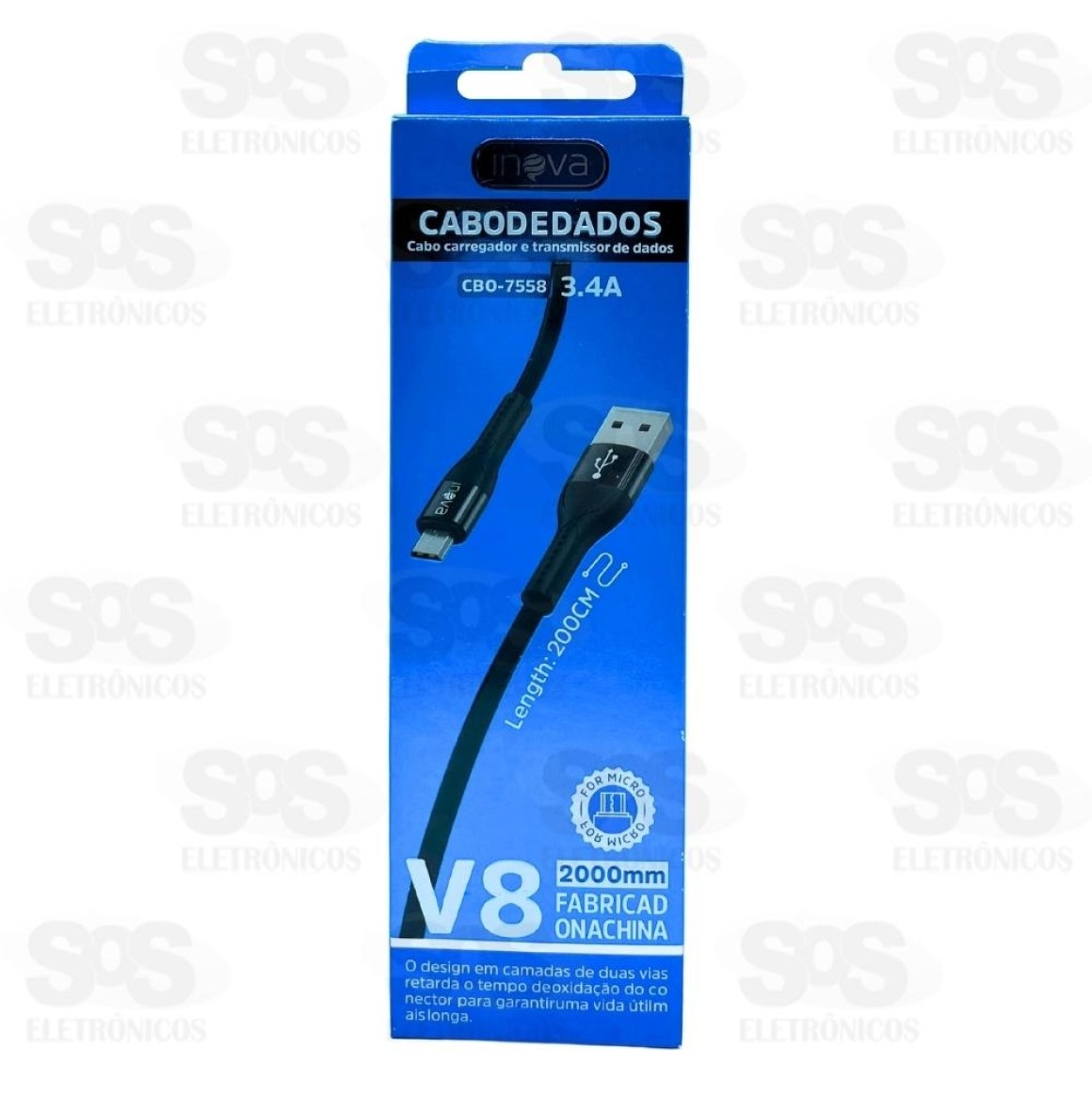 Cabo De Dados Nylon Micro USB V8 2 Metros Inova CBO-7558