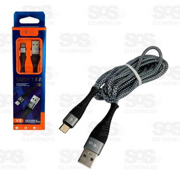 Cabo De Dados 3.4A Micro USB V8 2 Metros Inova Prime CBO-20295