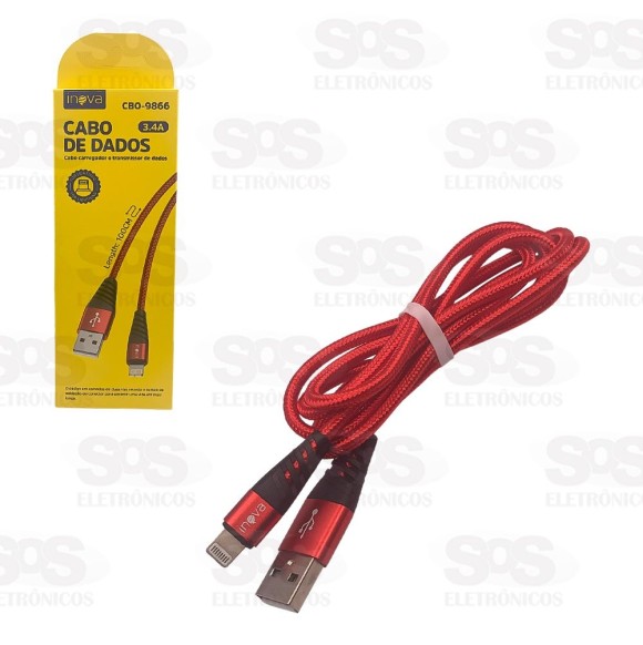 Cabo De Dados Iphone 3.4A 1 Metro Inova CBO-9866 Cabo de dados flexível e durável com anti-interferência. Compatível com todas as edições de USB. Com 1 metro de comprimento. Cores variadas.