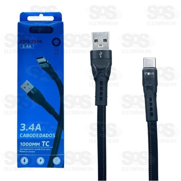 Cabo De Dados Nylon Type-C 1 Metro Inova CBO-7556