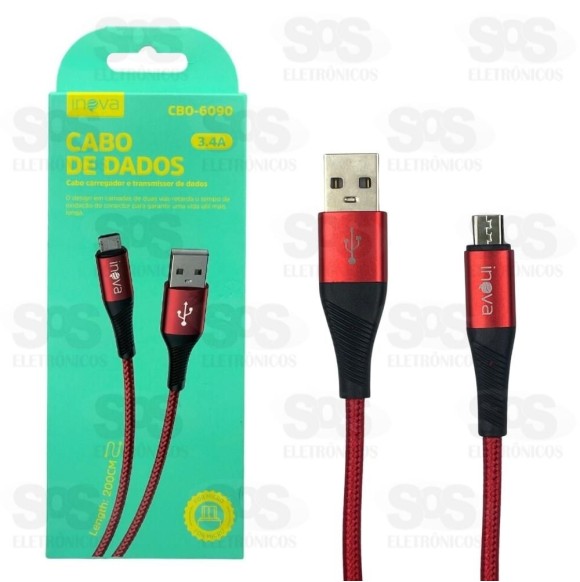 Cabo De Nylon Reforçado Micro USB V8 2 Metros Inova CBO-6090