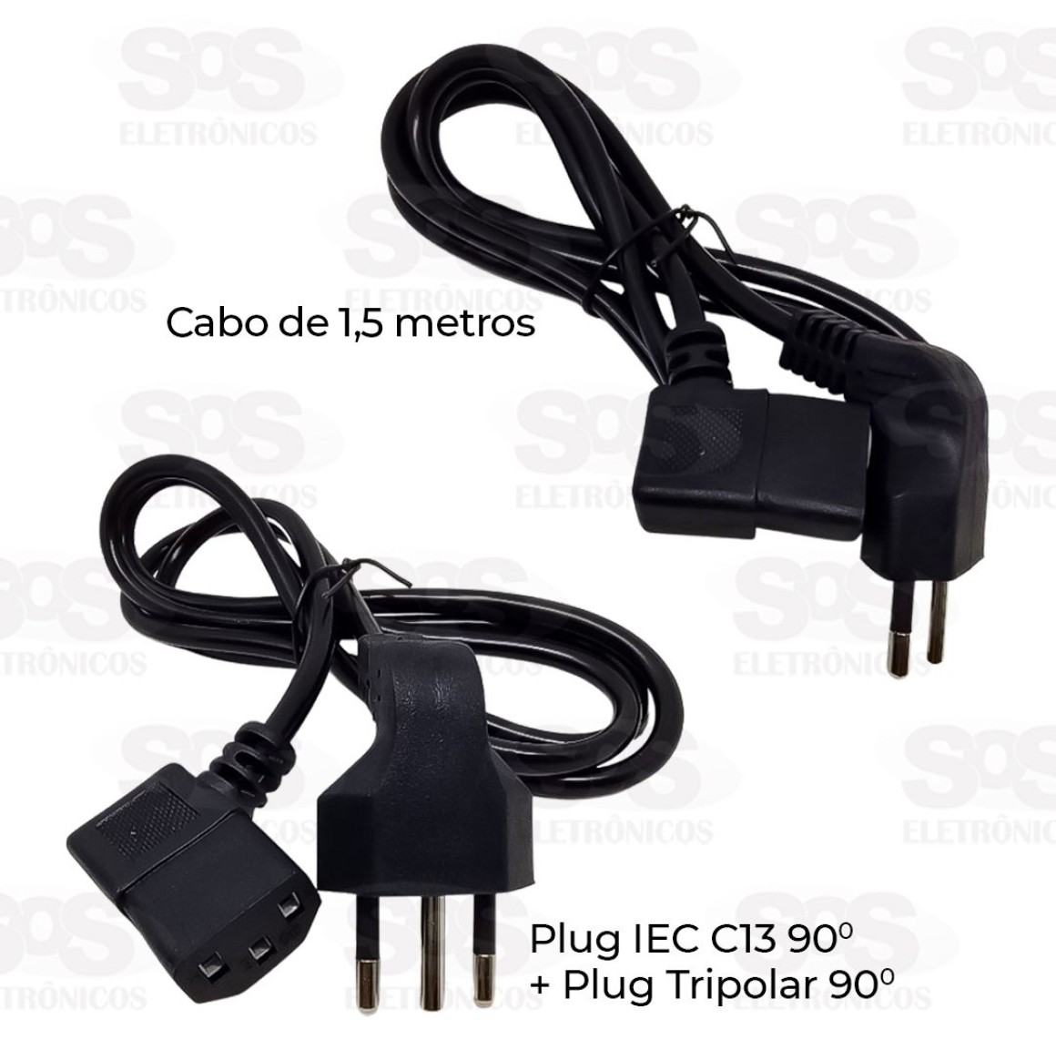 Conexão Plug IEC C13-90º + Plug Tripolar 90º