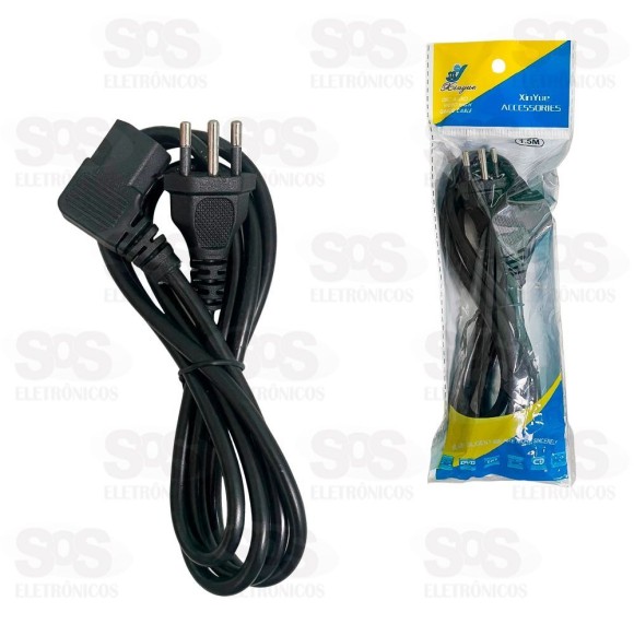 Cabo de força com 3 pinos para fontes, computadores, televisão, monitores e outros eletrônicos em geral que utilizem o mesmo padrão (Tripolar).