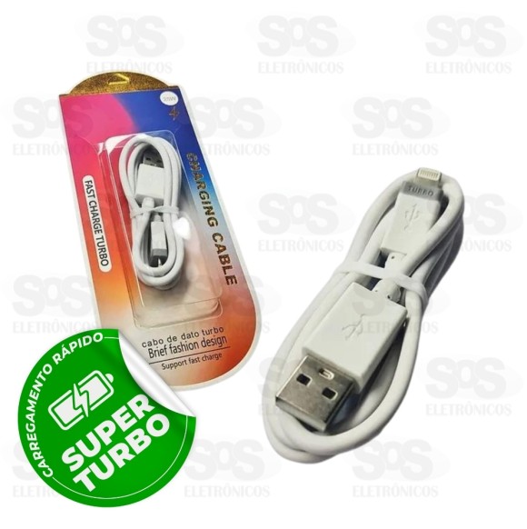 - Versão TURBO 25W, carregamento rápido do seu Iphone. - Cor: Branco - 90cm de cabo com material flexível e qualidade. - 98cm total da ponta do USB à ponta do conector para o celular.