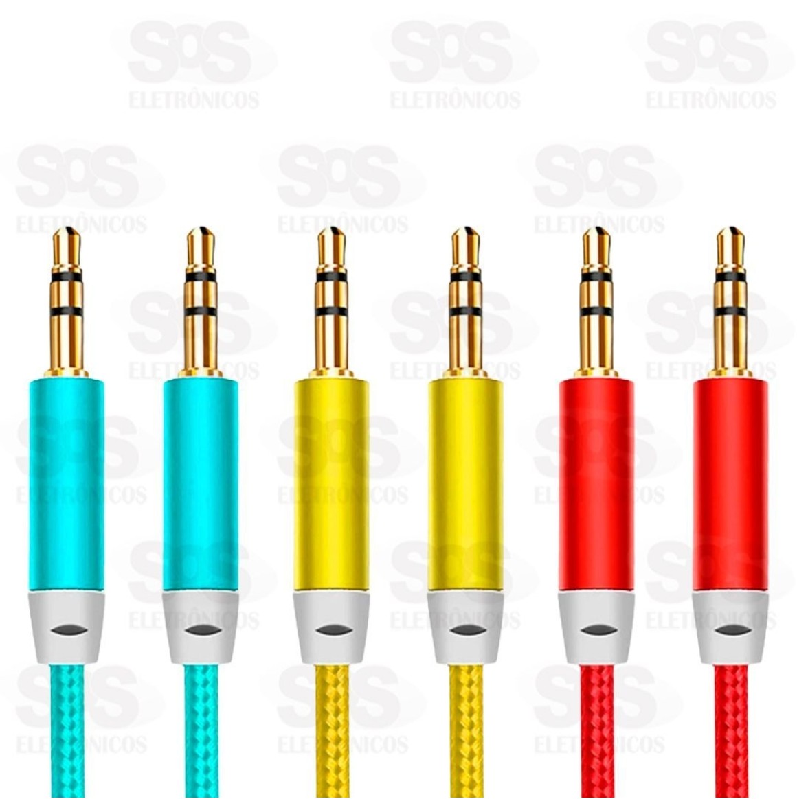 Cabo Nylon P2 Para P2 Estéreo Ponta Dourada Cores variadas