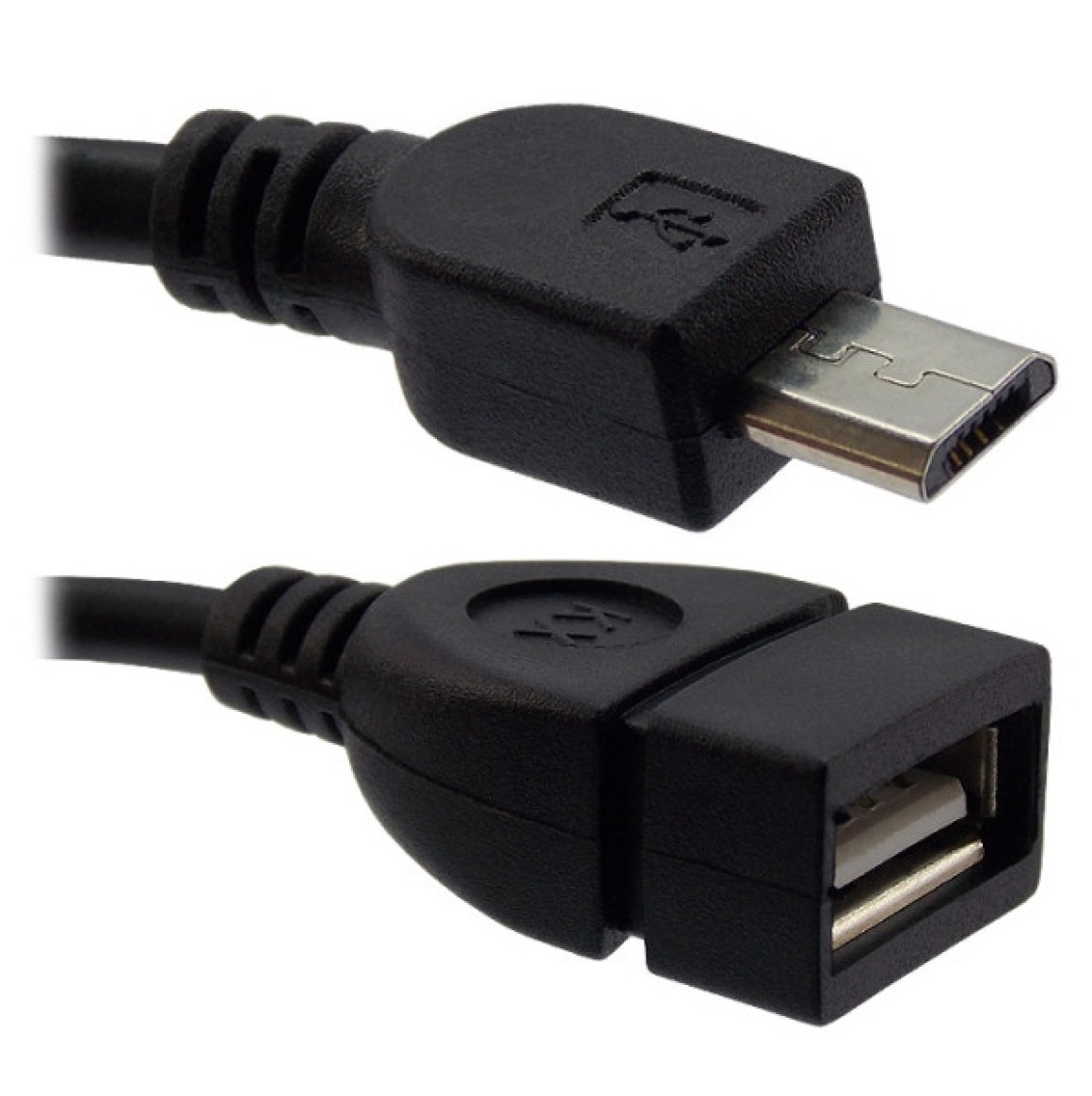 Cabo adaptador utilizado em smartphones, tablets ou qualquer outro aparelho que possua entrada USB Mini V8 para inserir dispositivo com entrada USB macho, como por por exemplo pendrive, teclados, mouse, impressoras, câmera fotográfica entre outros.