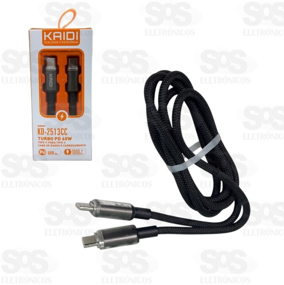 Cabo Type C Para PD 60W Ponta Emborrachada 1 Metro Kaidi KD-2513CC