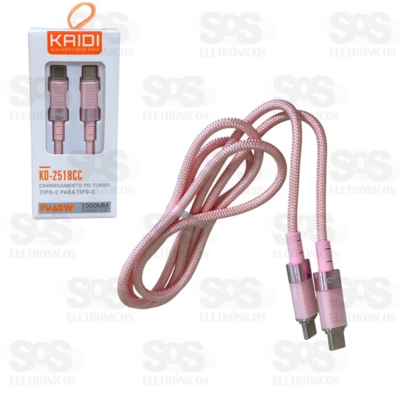 Cabo Type C Para PD 60W Ponta Emborrachada 1 Metro Kaidi KD-2518CC