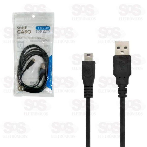 Cabo USB Para Mini USB V3 2 Metros IT-Blue LE-801 Compatível com caixa de som, PXP, GPS, câmera, MP3, MP4 e outros aparelhos que possuam a entrada mini USB V3. Design flexível e durável. Comprimento: 2 metros